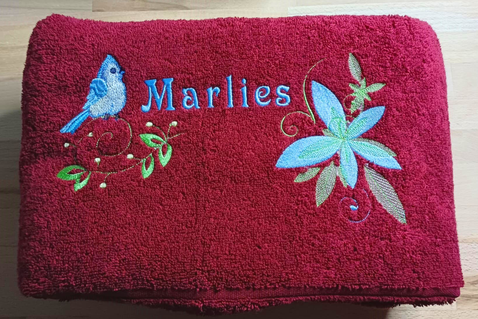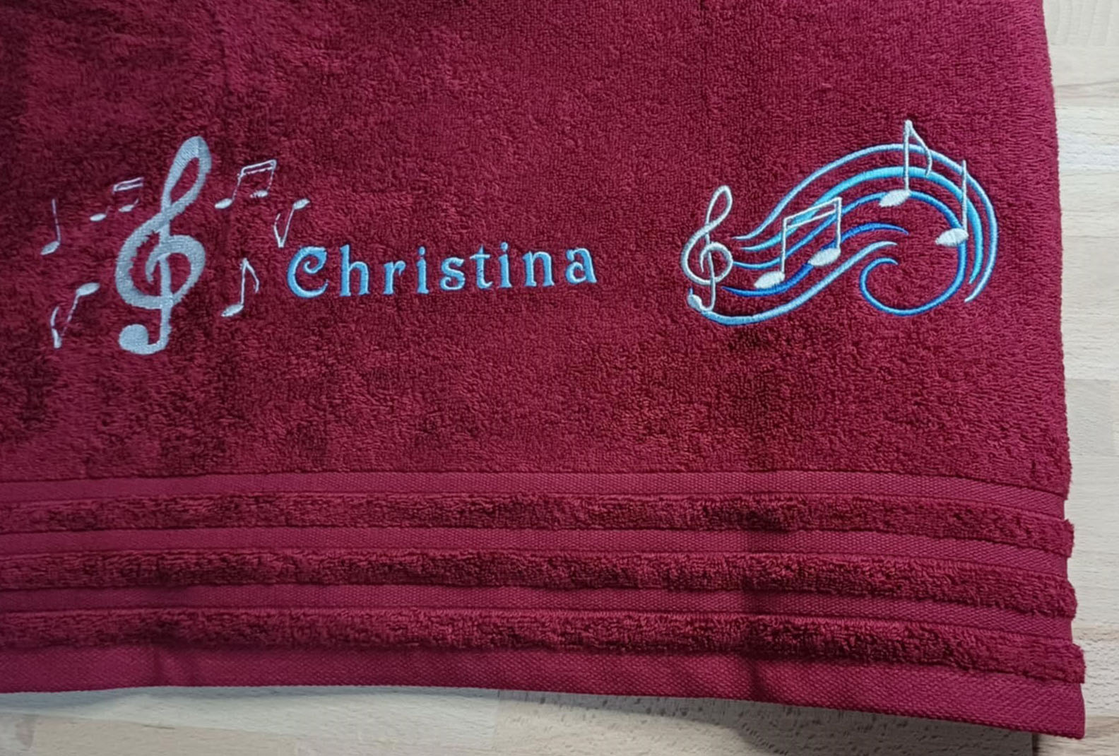 Mein Sortiment ist seit neustem um eine Veredlungsart reicher. Eine kleine Stickmaschine, die ich in der Weihnachtszeit gleich mal genutzt habe, um meine Familie mit persöhnlichen Handtüchern zu überraschen 🙂